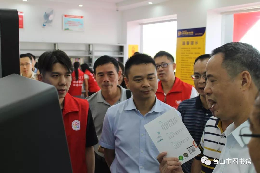 中共台山市委常委、宣传部长罗海华,江门市文广新局副局长柳超球及相关领导为台山市新建的24小时自助图书馆进行揭幕!