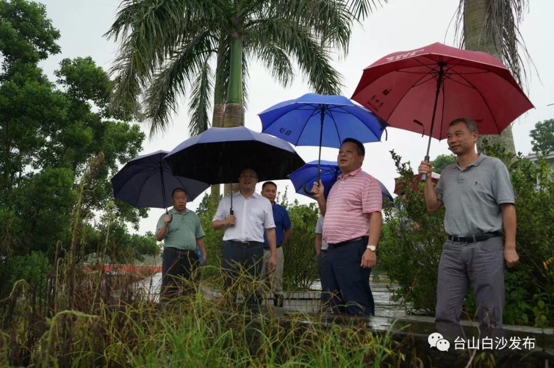 近日台山市遭遇连续强降雨天气,为做好洪涝防御工作,5月29日,市委副书记黄振中、市人大常委会副主任吴东文率领市水利局等部门到白沙镇督导“三防”工作。白沙镇党委书记黄品亮、镇长陈健洪等陪同。