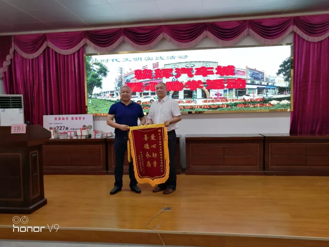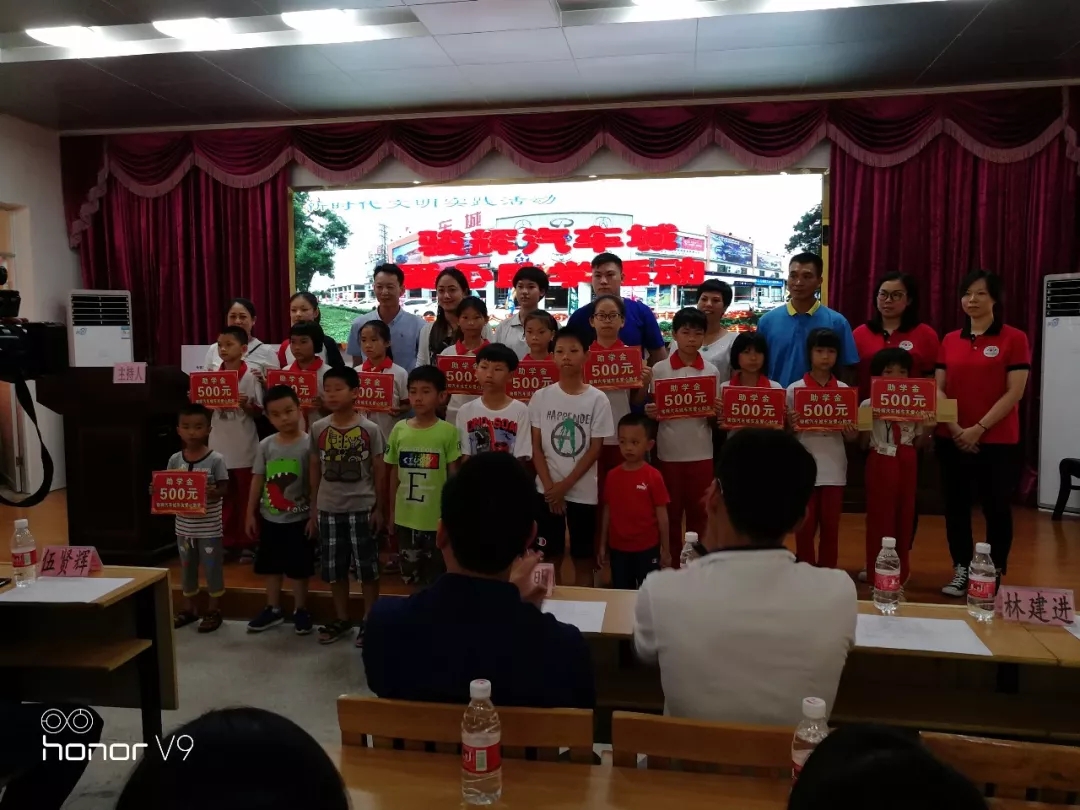 六月初夏,荷花送香,阳光普照。白沙镇中心小学学术报告厅热闹非凡,那里正举行“慈善助学 爱满侨乡”-骏辉汽车城车友爱心助学公益活动。此次活动由白沙镇政府牵头,得到了骏辉汽车城与爱心车友们的大力支持,对中心小学22名贫困学生进行资助,每人500元。