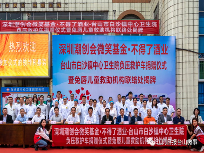 为进一步完善基层医疗硬件配套,提升乡镇医疗水平,助力乡村医疗卫生事业发展,近日,深圳市潮创会、微笑慈善基金会向白沙镇中心卫生院捐赠了1台负压救护车,并捐款了50万元用于设立台山市兔唇儿童救助专项基金。台山市委副书记、政法委书记赵建涛出席活动。