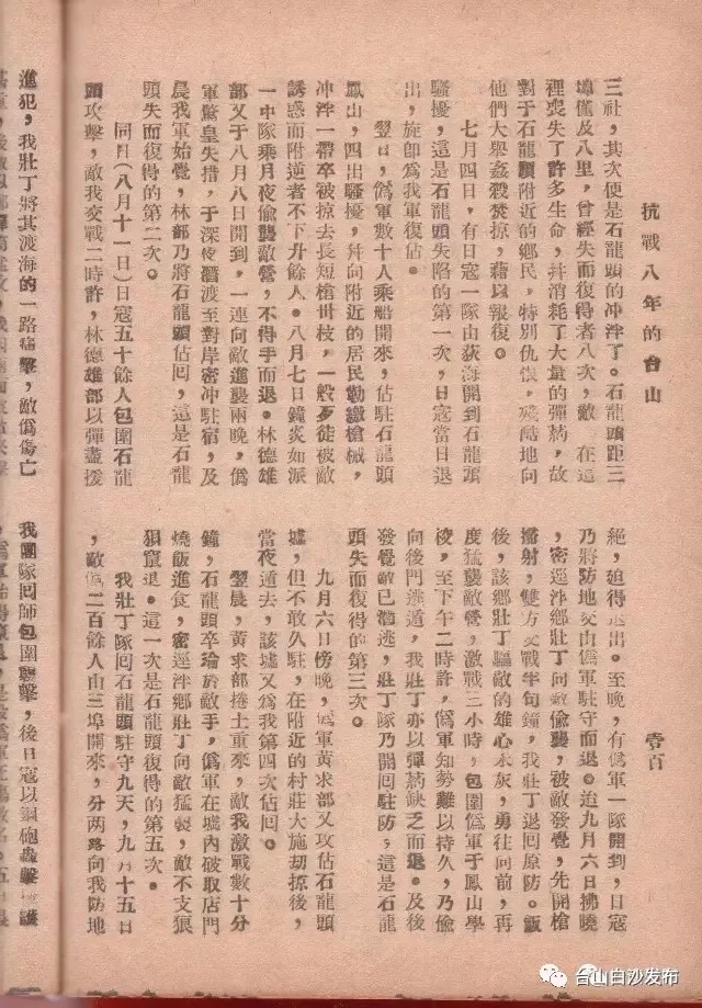 《抗战八年的台山》中关于“八失八得石龙头”的记载