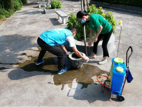 白沙卫生院志愿者灭蚊清积水,防控登革热