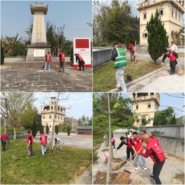 在活动现场全体人员分工合作对纪念碑及周边环境进行清洁,有的用剪草机修剪纪念碑周边杂草、枯枝,有点用手帕细致清理碑体浮尘,大家同心协力把纪念碑及周边环境进行全面清理,使纪念碑焕发更加庄严肃穆的光彩,为烈属及广大群众在即将到来的清明节拜祭烈士提供良好的环境。