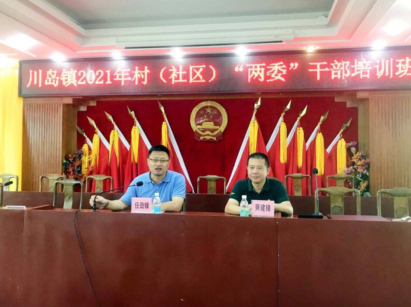 5月12日,川岛镇党委书记任劲锋在镇2021年村(社区)“两委”干部培训班上,以“学习党史担使命 苦干实干促发展”为主题讲授党课,给全镇19个村(社区)共131名“两委”干部上好党史“第一课”。