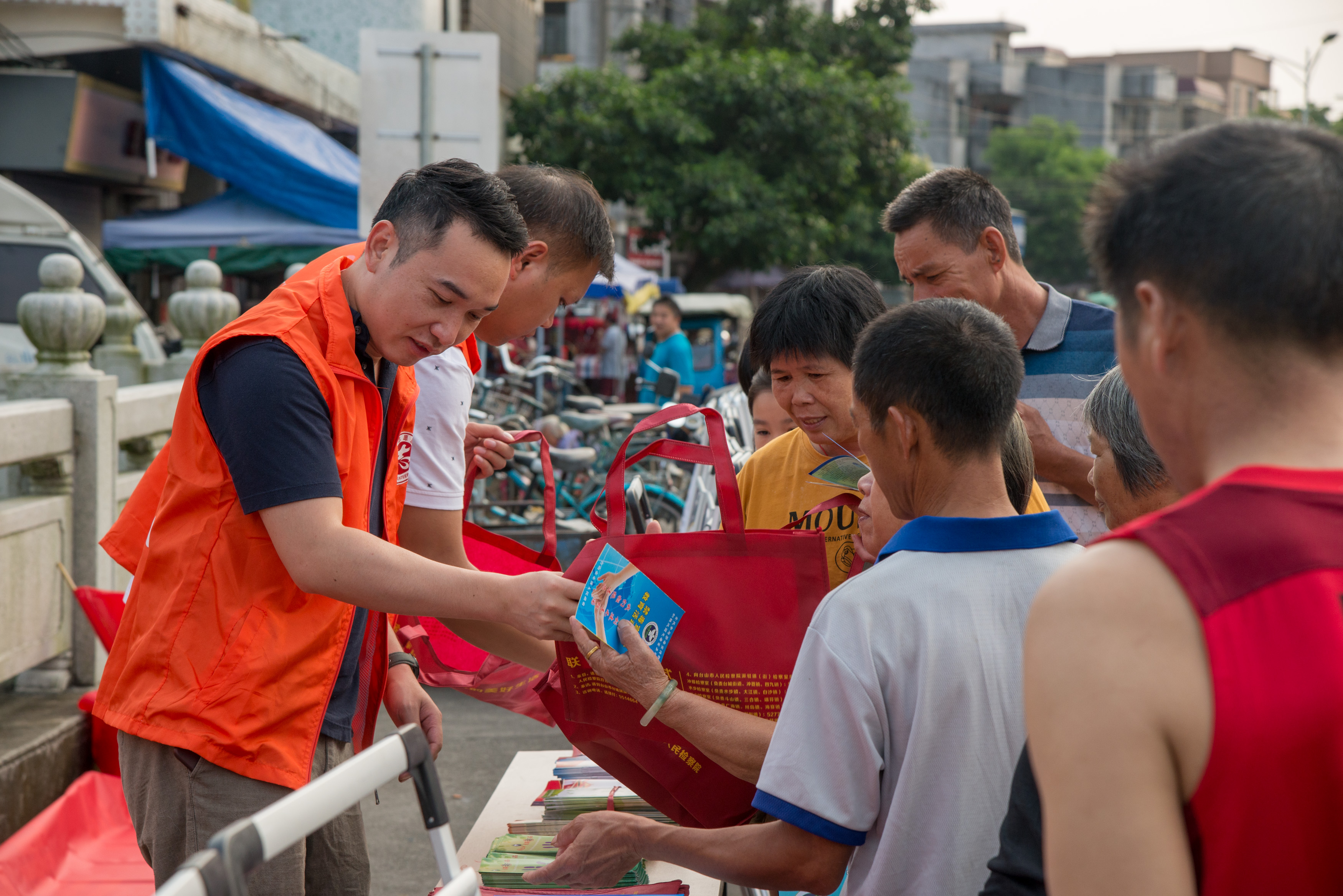 志愿者和社工耐心向群众讲解相关内容并派发宣传物品。