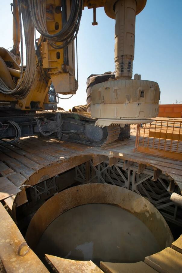 黄茅海大桥中塔主墩高约263米,最大直径达20米,为确保桥梁的承载能力和结构需要,设计了40根群桩基础,直径3米。