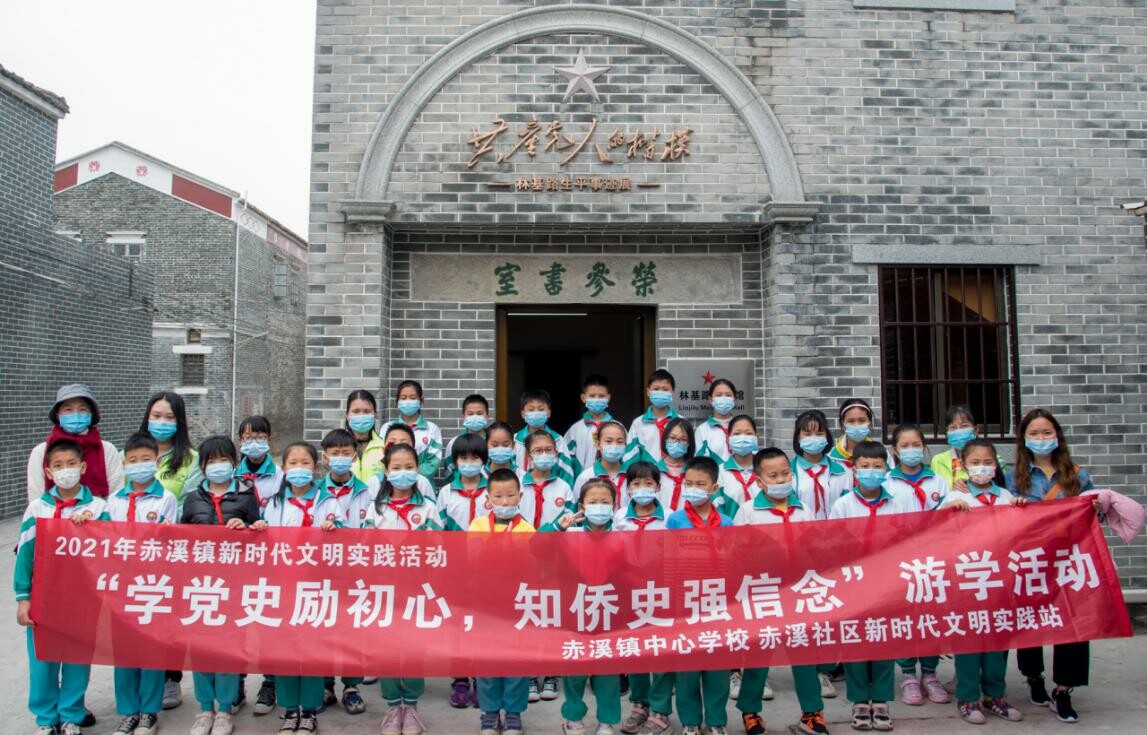 为了更好地传播党史与侨史,提升学生的文化自信,开展庆祝中国共产党成立100周年主题教育活动,3月24日,赤溪镇举办新时代文明实践“学党史励初心,知侨史强信念”游学活动。赤溪镇中心学校的32名师生乘着春风追寻党史、侨史的印记。