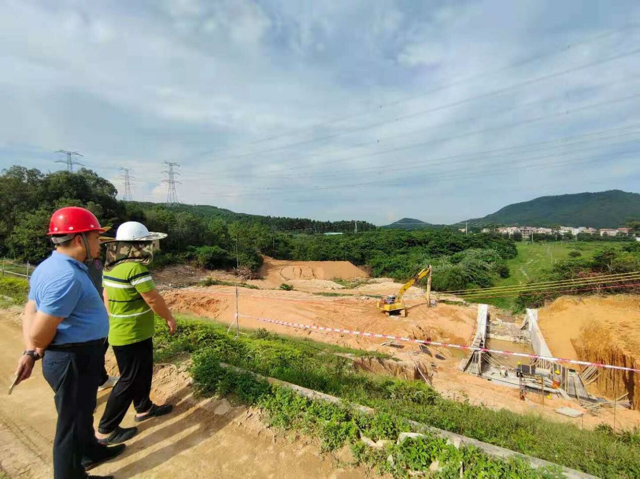 镇干部护岭水库施工现场巡查