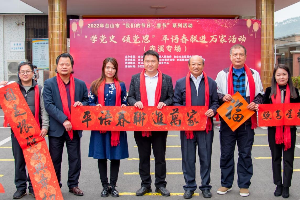 春联是过年的重要习俗,是迎接春节不可或缺的一道风景。在春节来临之际,为弘扬中华优秀传统文化,推动社会主义核心价值观融入百姓生活,营造喜庆的新年氛围,1月18日上午,台山市文联、赤溪镇人民政府联合在赤溪镇党校门口举行“学党史 颂党恩”平语春联进万家活动。
