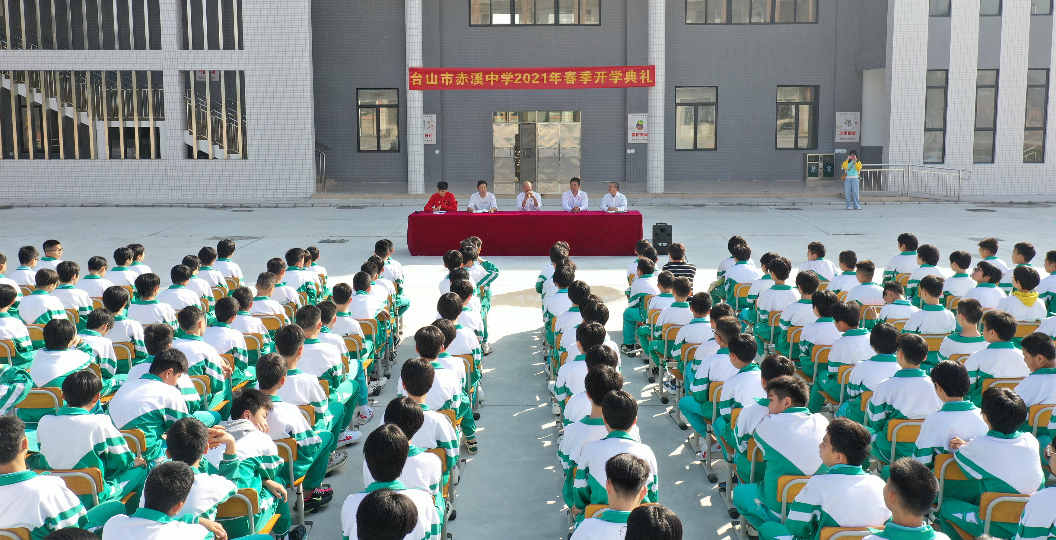 上午,全体师生同聚校园操场,新校园第一次举行了庄严的升国旗仪式,第一场有意义的新学期开学典礼,新教室里上了第一堂开学课……明亮的课室,崭新的桌椅,宽敞的学生食堂,温馨的宿舍,环境优美的校园绿道和学习长廊,还有即将建成的图书馆、电教室、实验室、田径场、篮球场……新赤溪中学以崭新的面貌,迎来今年春季新学期开学,为朝气蓬勃的莘莘学子提供良好的学习环境,成为我镇培养优秀学子的重要基地,助推全镇教育高质量发展。