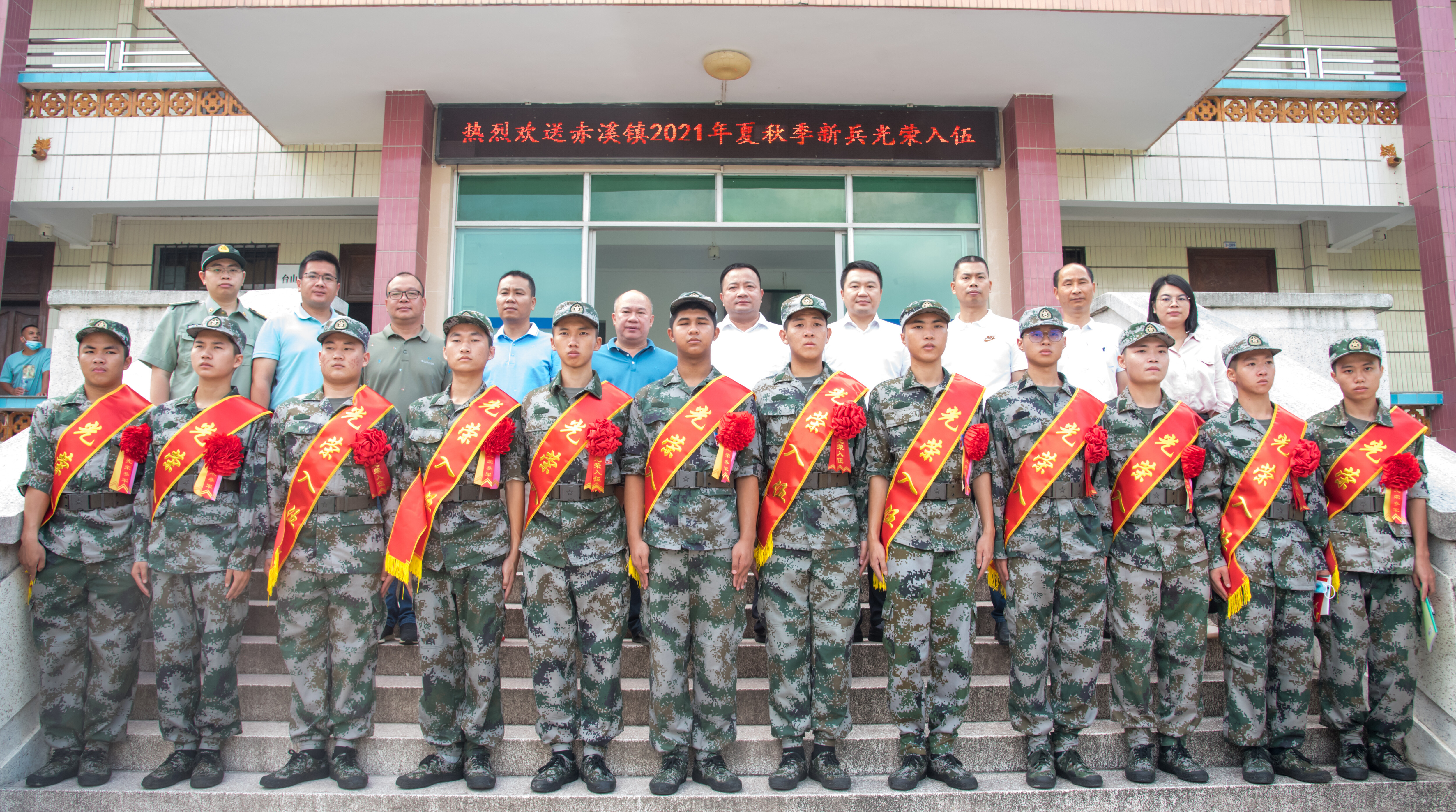 仪式结束后,在镇党政领导班子、干部群众和家属的欢送下,赤溪镇12名优秀青年身着崭新军装,胸戴大红花,带着全镇人民的殷切期望和嘱托,军容严整,奔赴军营,踏上保家卫国的新征程。