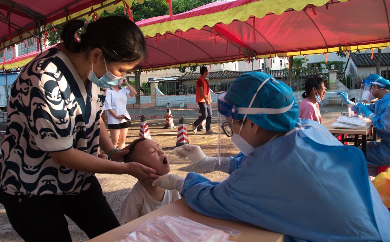“请大家站开一点,不要聚集,保持一米线距离。”长安村网格长叶永宽不停地重复着,引导群众有序开展核酸采样