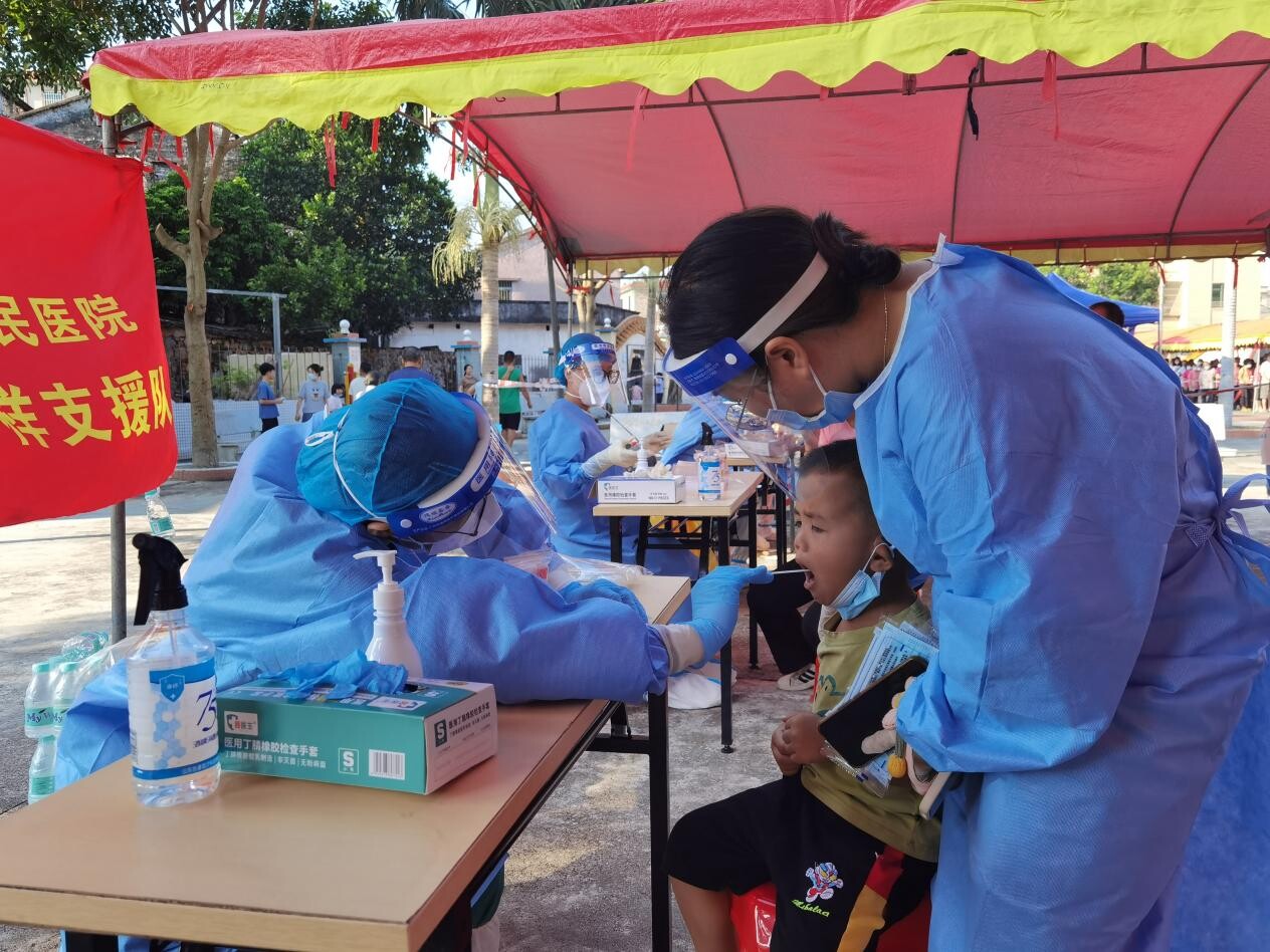 “小朋友,不要害怕,跟姐姐来。”田头村网格员曾绮莹耐心地带领小朋友完成核酸采样全过程,原来小朋友的奶奶由于年老不会操作手机,于是她主动帮忙照顾。每次的核酸采样工作,总会在不同的岗位上遇见她,有时是信息录入员,有时是秩序引导员或便民服务员,不管在哪个岗位,她总是大大咧咧地笑着说:“累并快乐着,守护人民群众的生命健康,累点也无妨。”