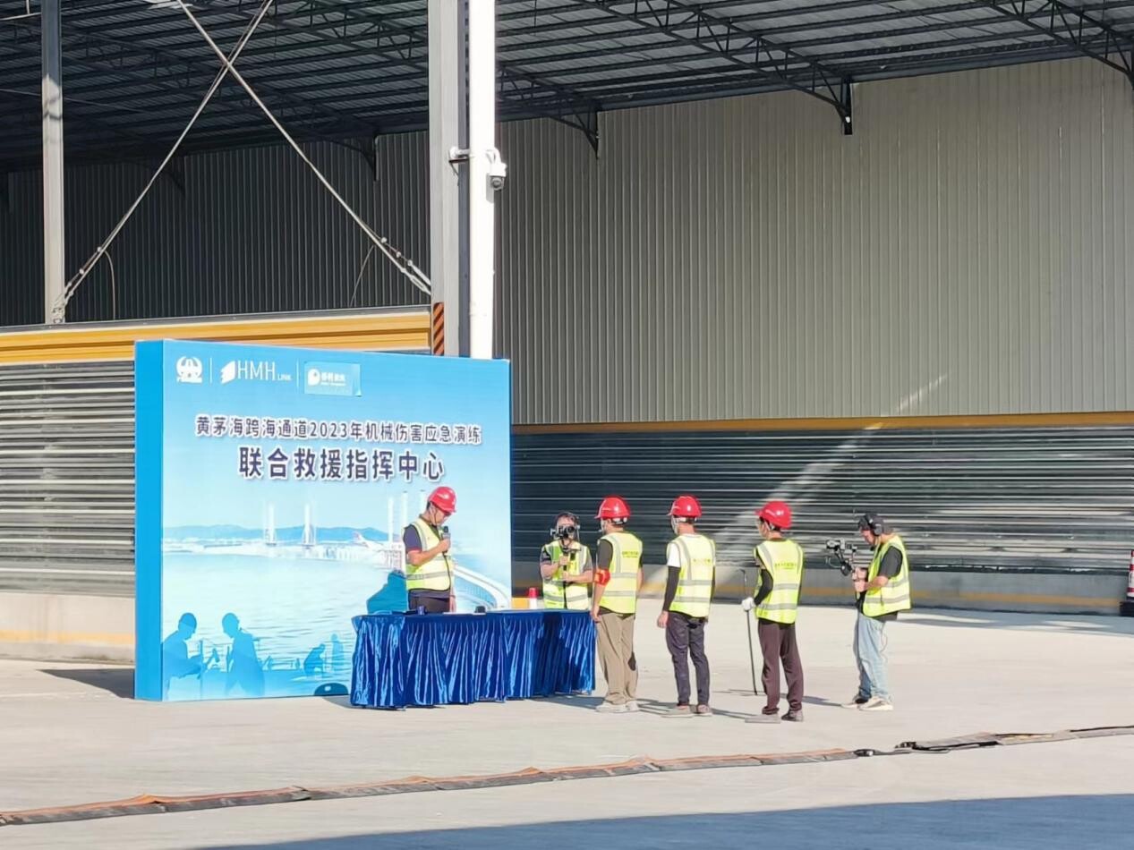 为检验赤溪镇及保利长大工程有限公司部门间的联动机制和项目部现场应对突发事故的实战能力,在黄茅海跨海通道T10合同段沥青拌和站现场,演练模拟了铲车在冷料上料区作业后退时,不慎将从料仓口出来的工人碰撞倒地,造成工人一只脚被碾压受伤的事故。事故发生后,参演人员启动应急预案,按应急预案开展事故上报、事故现场警戒、现场应急处置和现场救治等规范化处置流程,经过各应急救援小组相互配合、紧张有序的救援,最后受伤人员被成功救出并送往医院进行治疗。