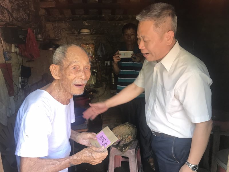 在莲湖村委会90多岁高龄的老党员曾义家中,再三嘱咐老人要注意饮食起居和出行安全,保重身体,并衷心祝愿老党员健康长寿。