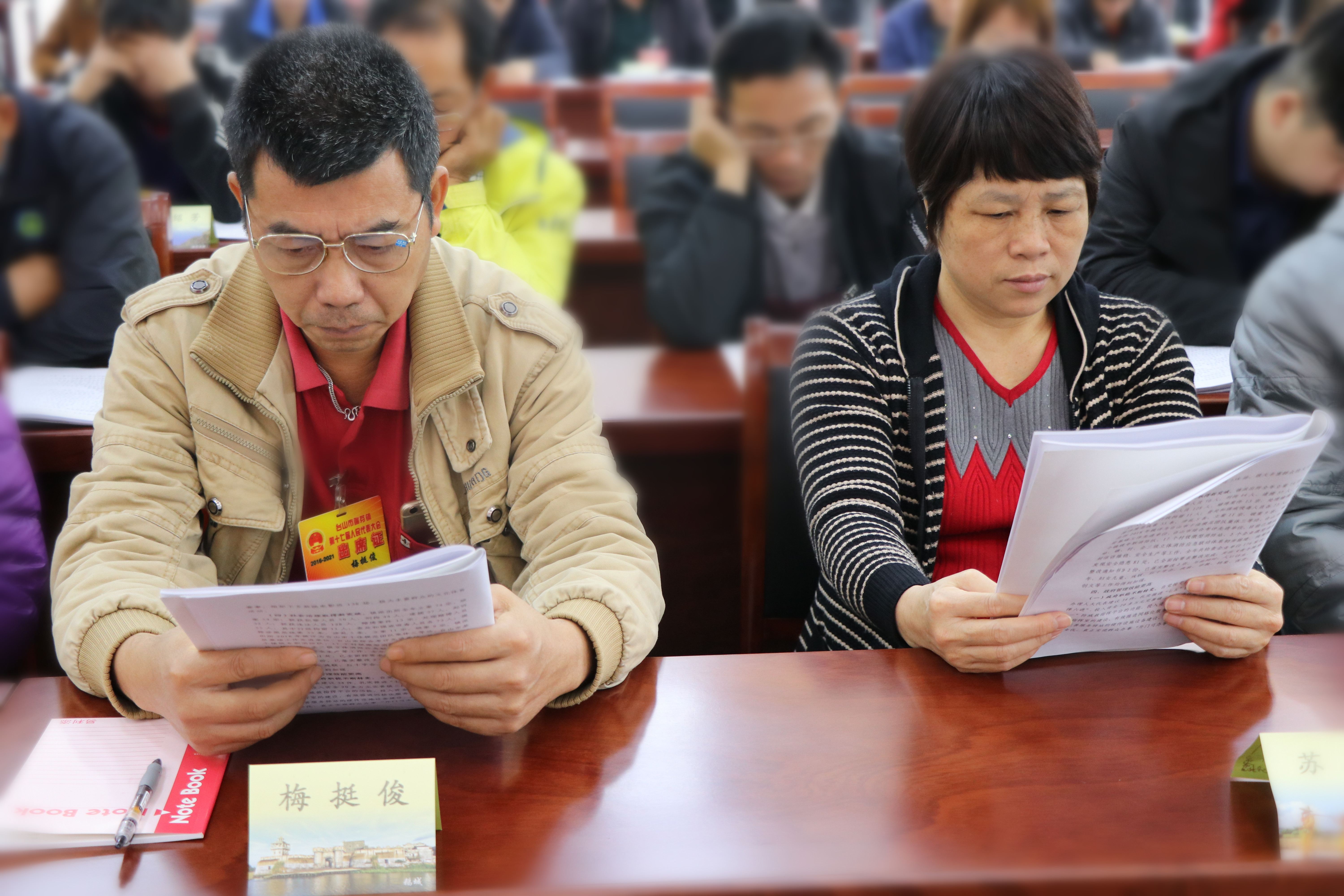 人大代表认真阅读和听取工作报告