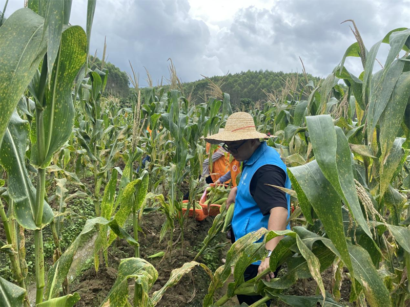 转眼间到了玉米丰收的季节,七月天烈日当空,天气闷热,大家汗流浃背,但小张和党员志愿者们不怕热不怕累,直接打着赤脚挽起裤脚就下田采摘。看到丰收的玉米,小张立即联系端芬康园中心,开展“买6斤捐赠一斤给端芬康园中心的残疾人”的爱心团购活动。消息一经发布,爱心人士们个个踊跃购买,不到一天的时间,300多斤玉米一售而空。