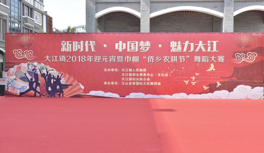 3月1日下午,在大江镇江山多骄—台山•国际文旅展贸城文体广场举行的新时代•中国梦•魅力大江2018年迎元宵暨巾帼“侨乡农耕节”舞蹈大赛圆满闭幕。本次大赛由镇人民政府、镇综合服务中心(文化站)、镇妇联主办,江山多骄国际文旅展贸城承办。