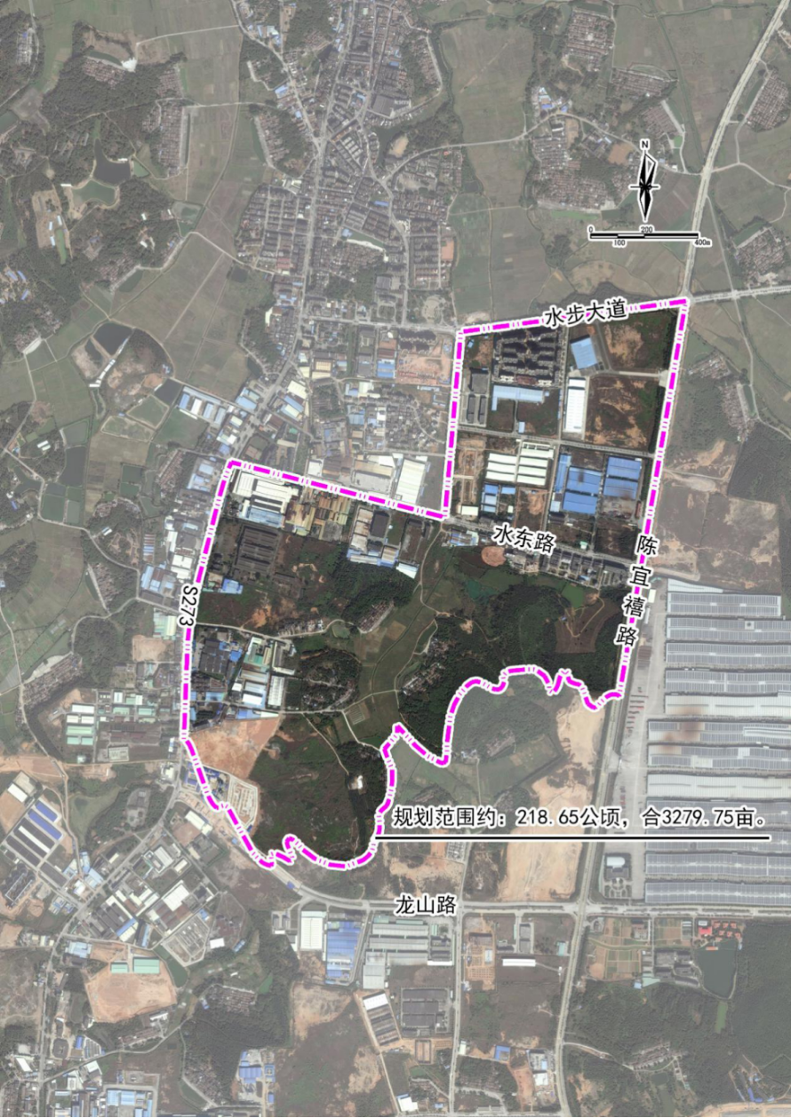 规划区位于台山市水步镇,北至水步大道、水东路,东至陈宜禧路,南至水步镇域与台城交界处,西至省道高铜线及长兴路,规划用地面积218.65公顷(合3279.75亩)。 |
