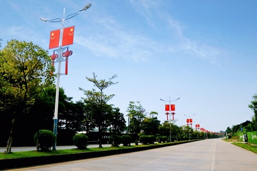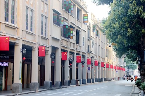 ▲陈宜禧路沿线悬挂国旗和中国结
