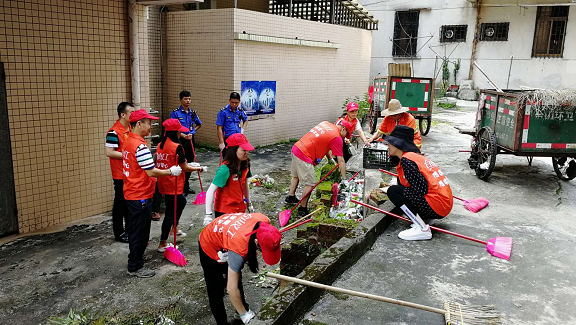 9月6日市城管局机关党支部联合团市委党员义工走进南塘社区圣元里路,开展一次“双报到双服务,创建文明城市”的党员义工服务活动。