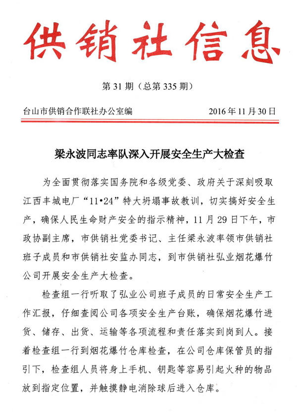根据《中华人民共和国政府信息公开条例》的规定,现公布台山市供销社2016年政务信息公开工作年度报告。内容涵盖市供销社2016年1月1日至12月31日期间的政府信息公开工作情况。本报告的电子版可在市供销社门户网站(http://tsgxs.cnts.gov.cn)下载。对本报告如有疑问,请与市供销社办公室联系(地址:广东省台山市台城南门路105号,邮编:529200,电话0750—5524650)。