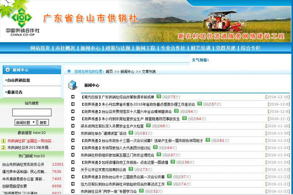 2016年,市供销社全面贯彻党的十八大和十八届历次全会精神,深入学习贯彻习近平总书记系列重要讲话精神,结合“两学一做”学习教育和“从严治党”要求,紧紧围绕台山市委、市政府中心工作,全面推进政府信息公开,主动回应群众的关切和需要,广泛宣传“三农”工作动态,不断完善措施、健全制度、落实责任,全面、深入、细致地开展了政府信息公开工作,并取得较好成效。