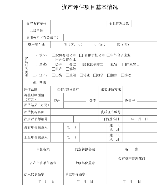 2.国有资产评估项目备案表